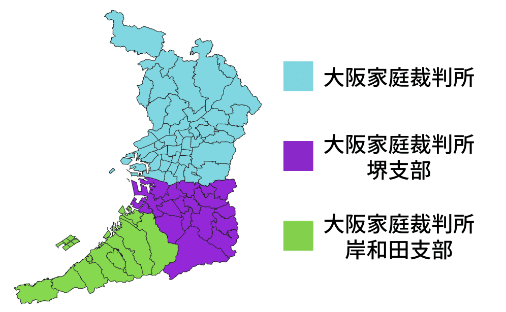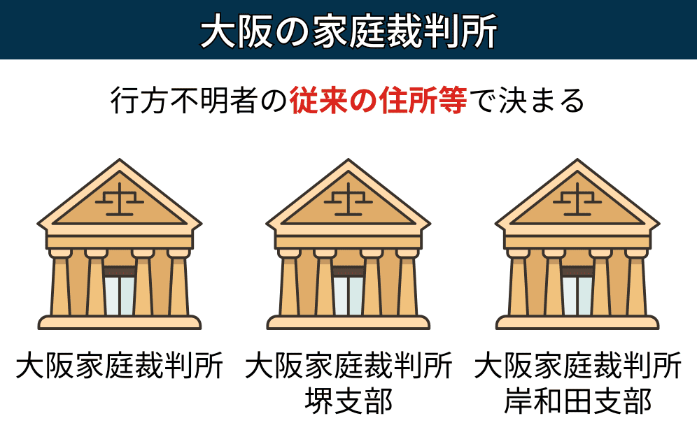 大阪の家庭裁判所は3つあり、行方不明者の住所地で管轄が分かれています。